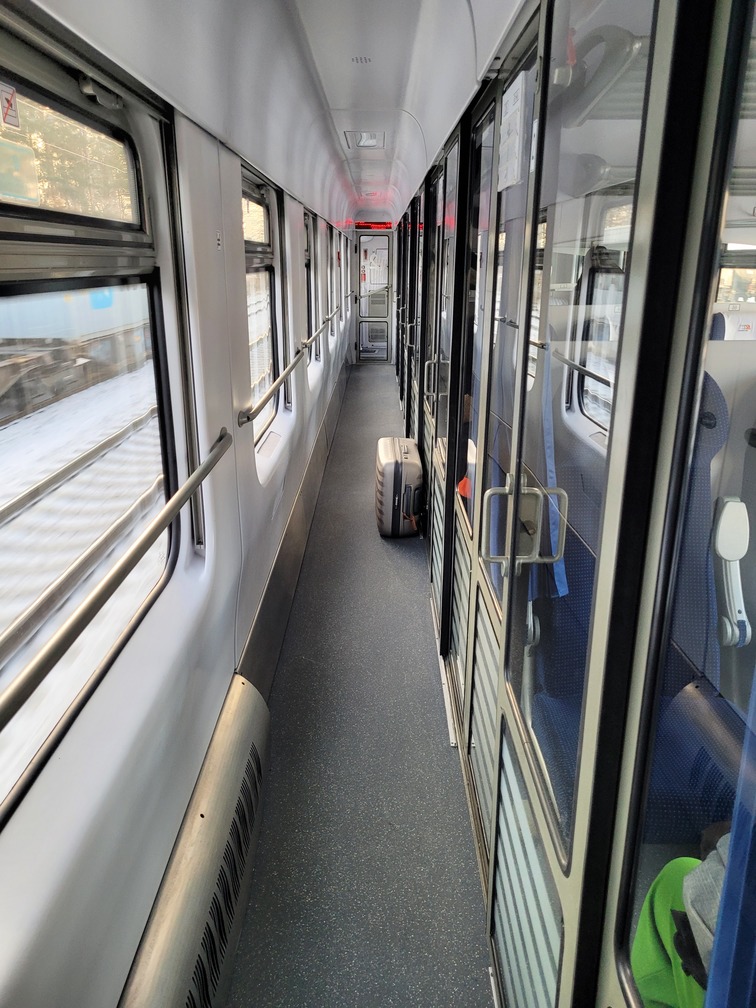 Most carriages have compartments with narrow corridors and little space for large pieces of luggage.