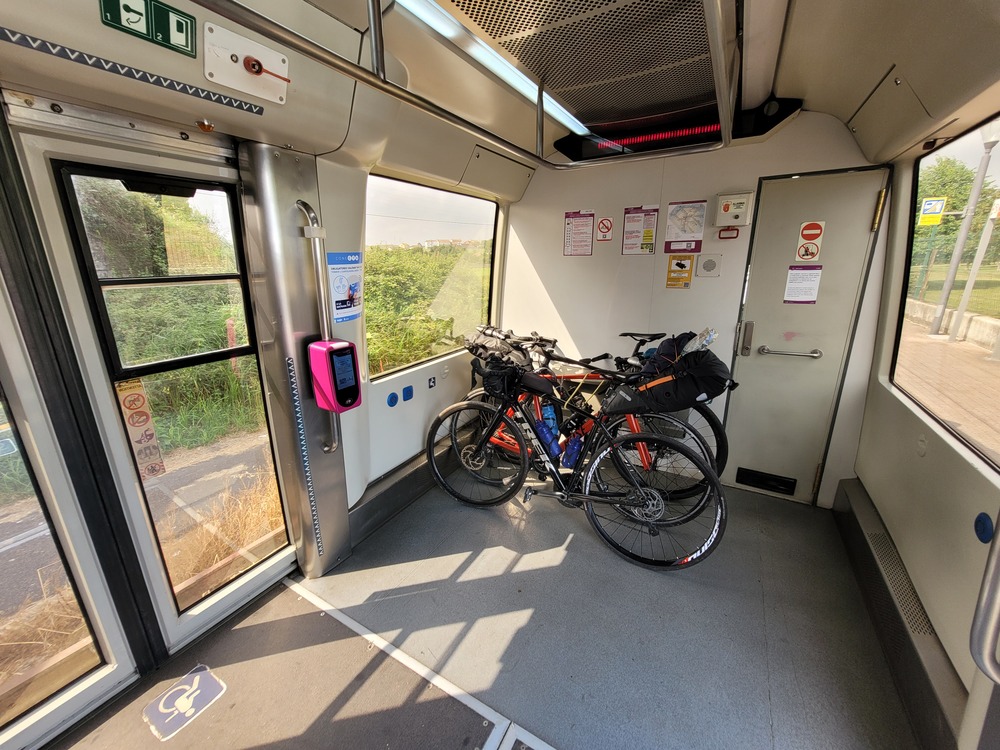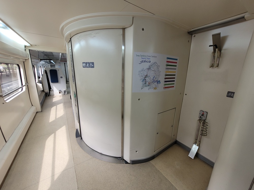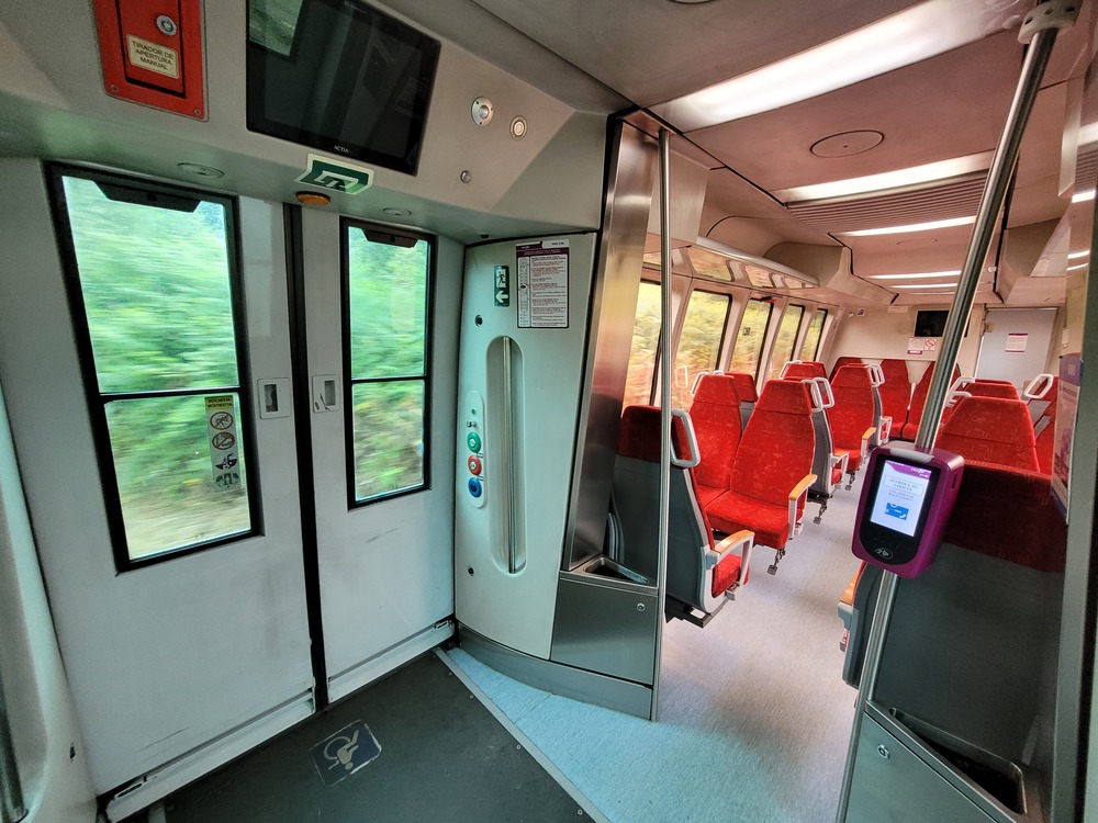 Unfortunately, the only space for large luggage in this train is around the wheelchair-accessible area…